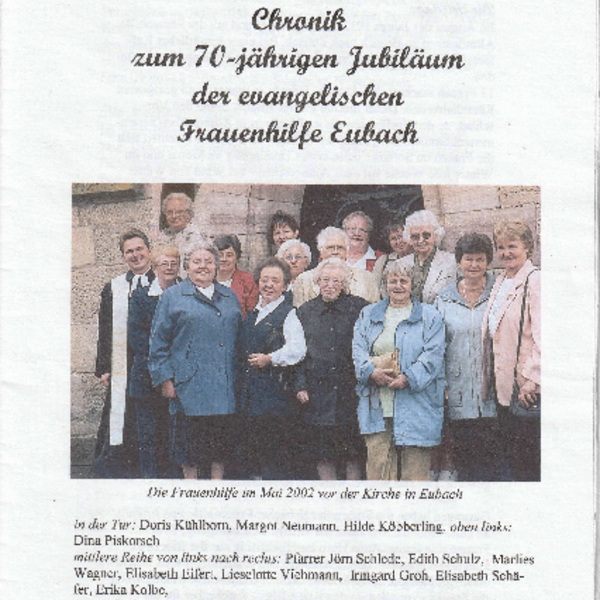 Chronik zum 70-jährigen Jubiläum der evangelischen Frauenhilfe Eubach. Außerdem zwei HNA-Artikel zur Frauenhilfe
